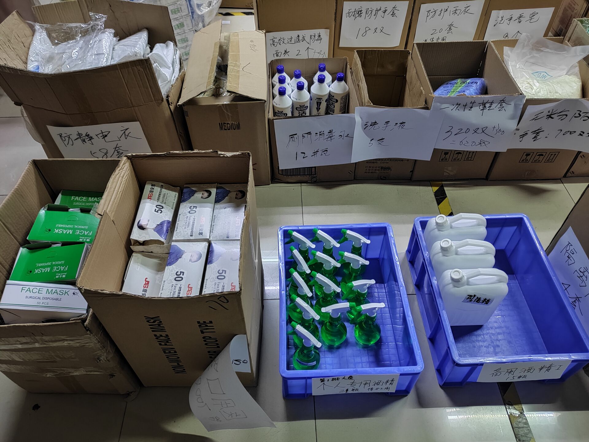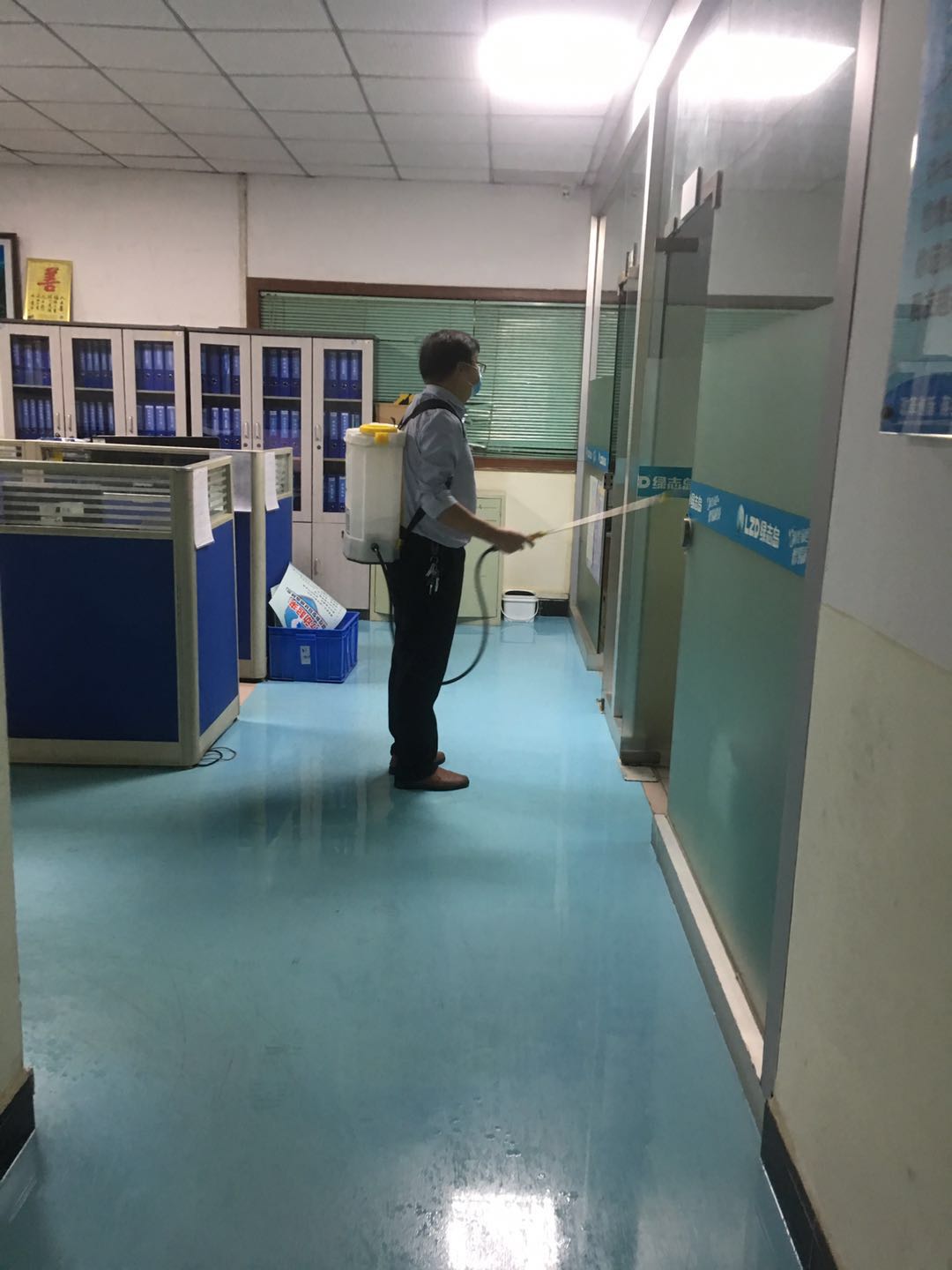 賴總對車間每個角落用84消毒水進行消毒