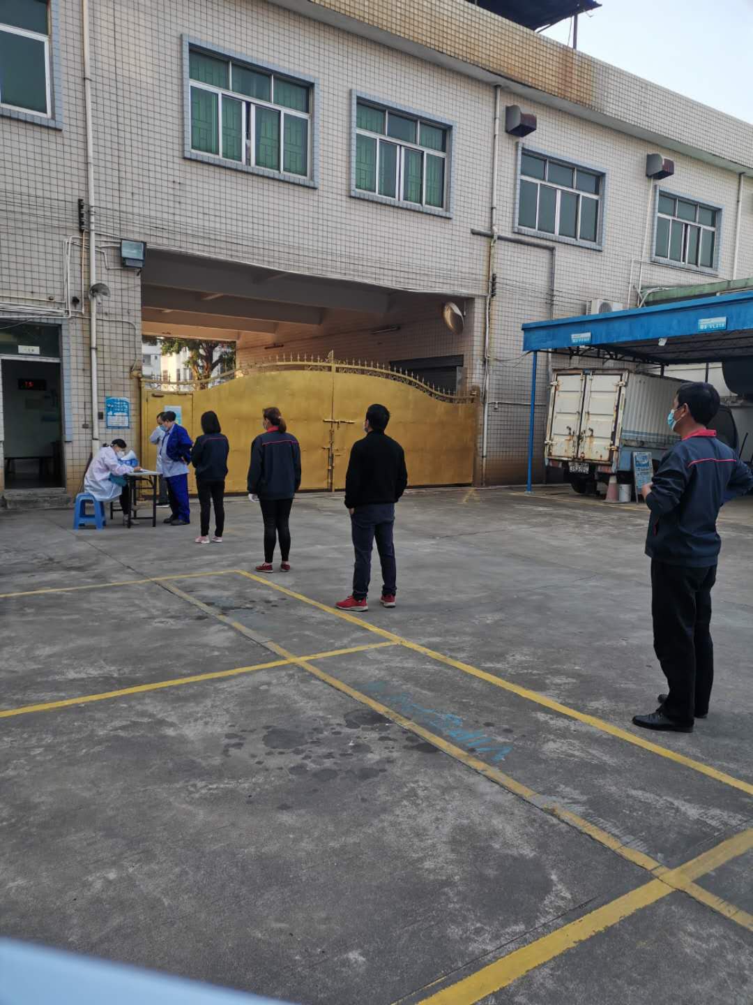 保安人員將對進廠人員登記和測量體溫