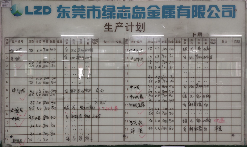 ▲二樓車間生產線計劃訂單